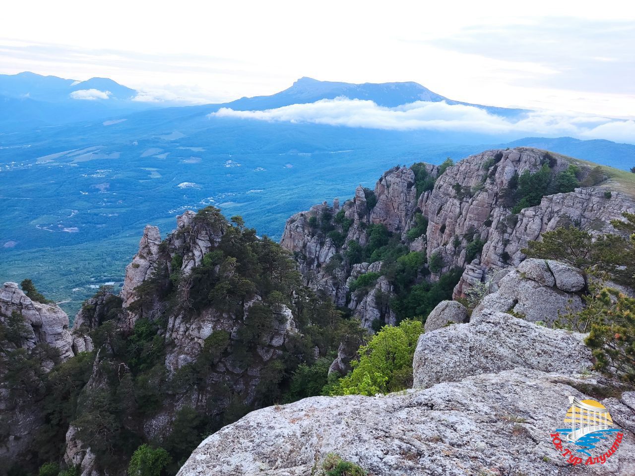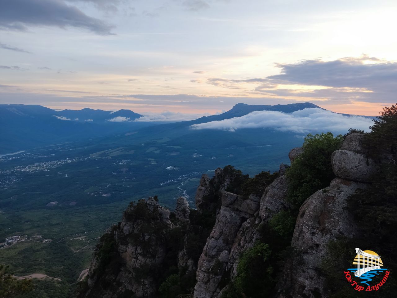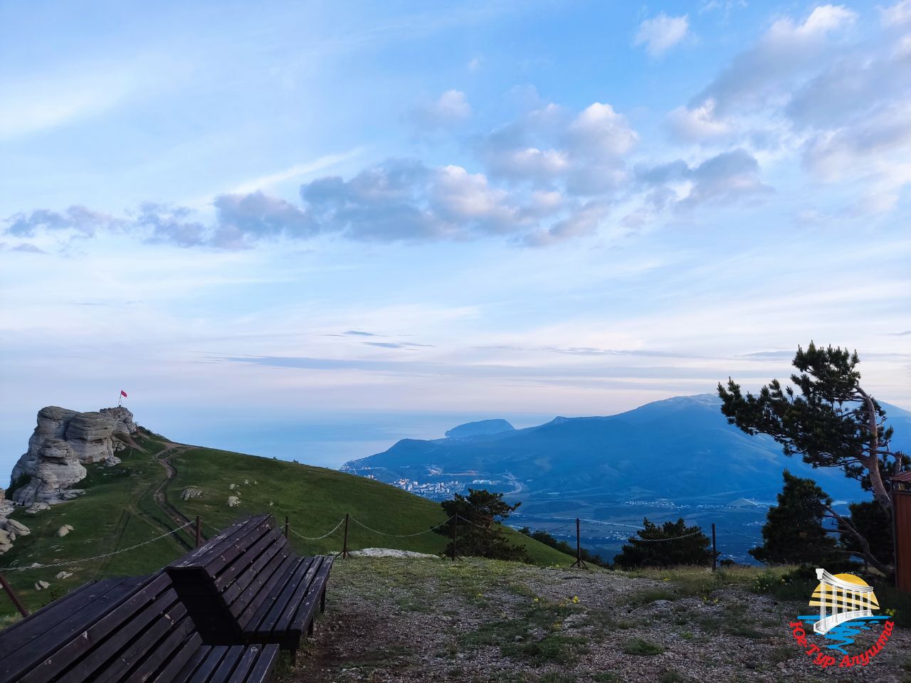 С высоты 1200 метров над уровнем моря открываются великолепные виды на Алуштинскую долину, горы Кастель, Чатырдаг, Бабуган. Воздух здесь необыкновенно чистый. Он пахнет горными травами. Гуляем и ждем закат.