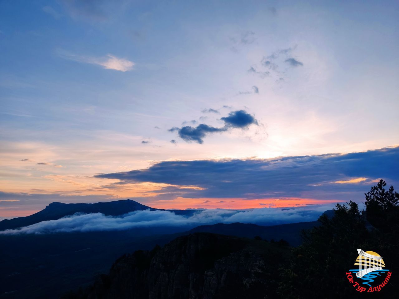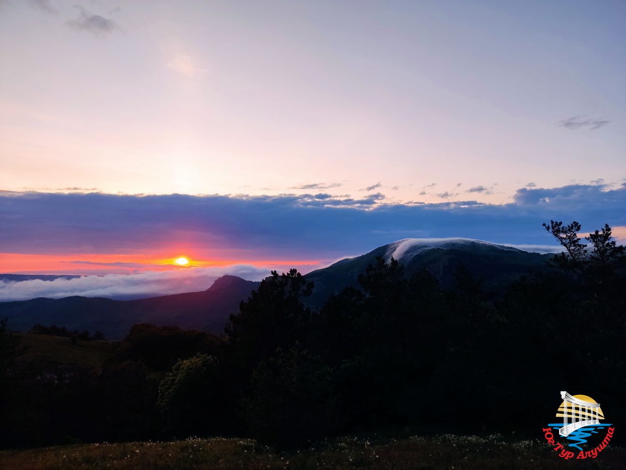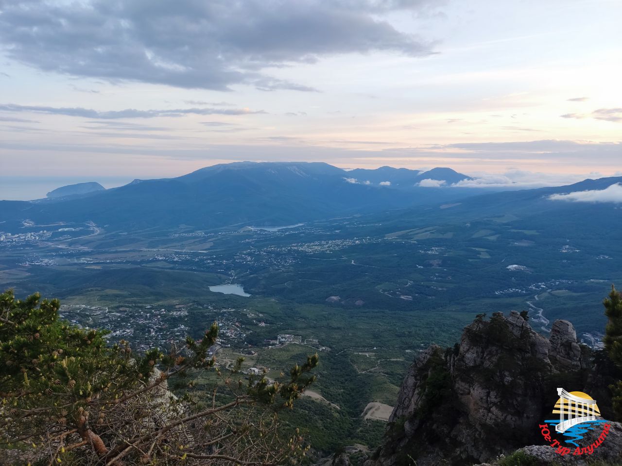С высоты 1200 метров над уровнем моря открываются великолепные виды на Алуштинскую долину, горы Кастель, Чатырдаг, Бабуган. Воздух здесь необыкновенно чистый. Он пахнет горными травами. Гуляем и ждем закат.